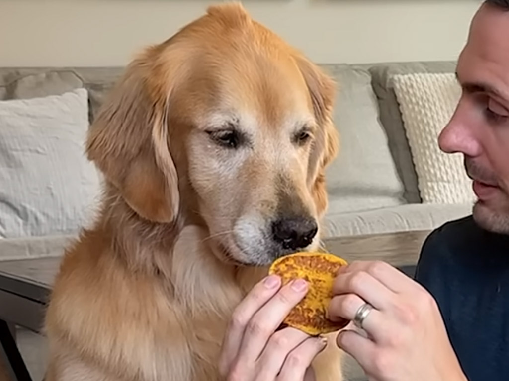 ゴールデンレトリバーが挑戦! 犬用パンプキンパンケーキで「味覚・噛む力・キャッチ力」を採点