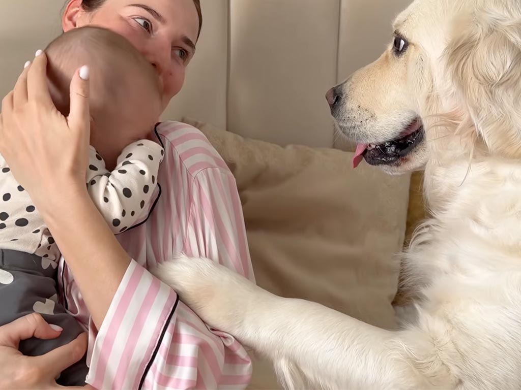 ベイリーはそっと前足をママの肩に乗せました。