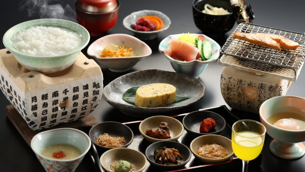 食事は、地元食材を中心に、季節感を大切にした和食。素材の味を活かしたやさしい味付けと、見た目にも美しい盛り付けが特徴です。夕食は、自然豊かな信州で育った国産牛をメインにした会席料理、朝食は信州の幸を取り入れた和食膳。多くのお客様から高い評価をいただいています。