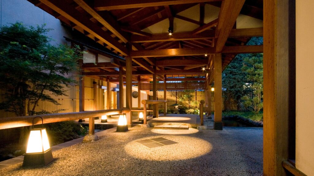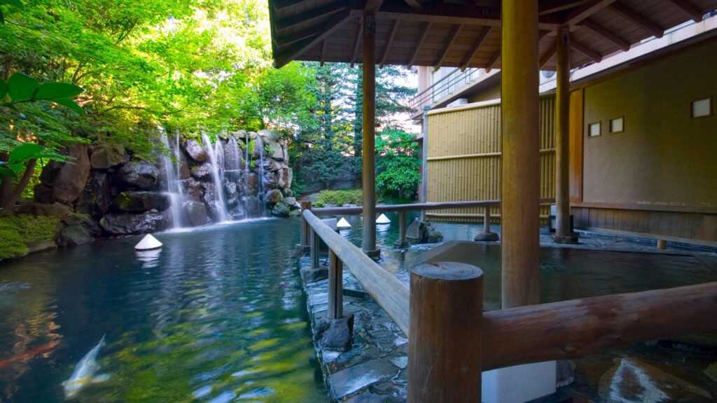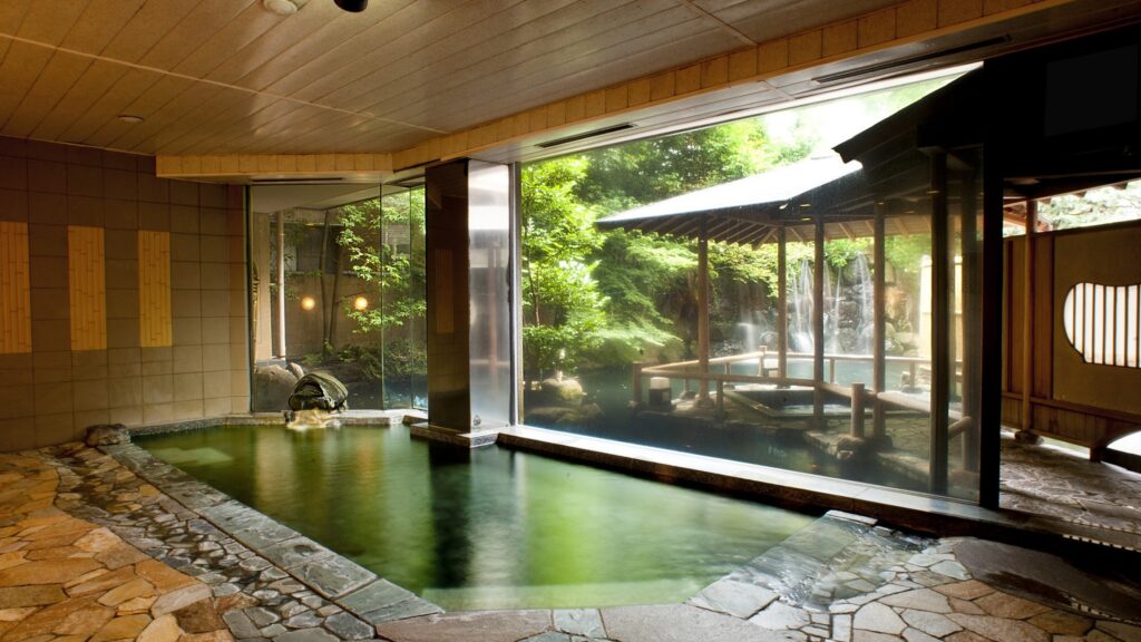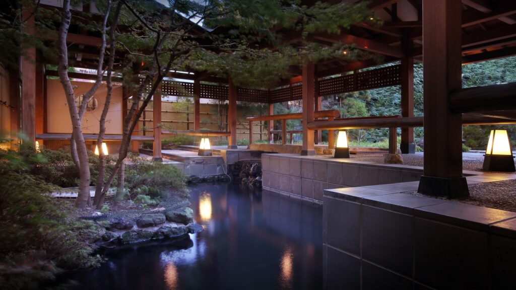館内では、2つの源泉井戸から汲み上げた温泉と、趣の異なる6つの浴場を楽しめます。大浴場や貸切風呂で湯に浸かり、移動の疲れをゆっくりほどいていく時間は、温泉宿ならではの魅力です。