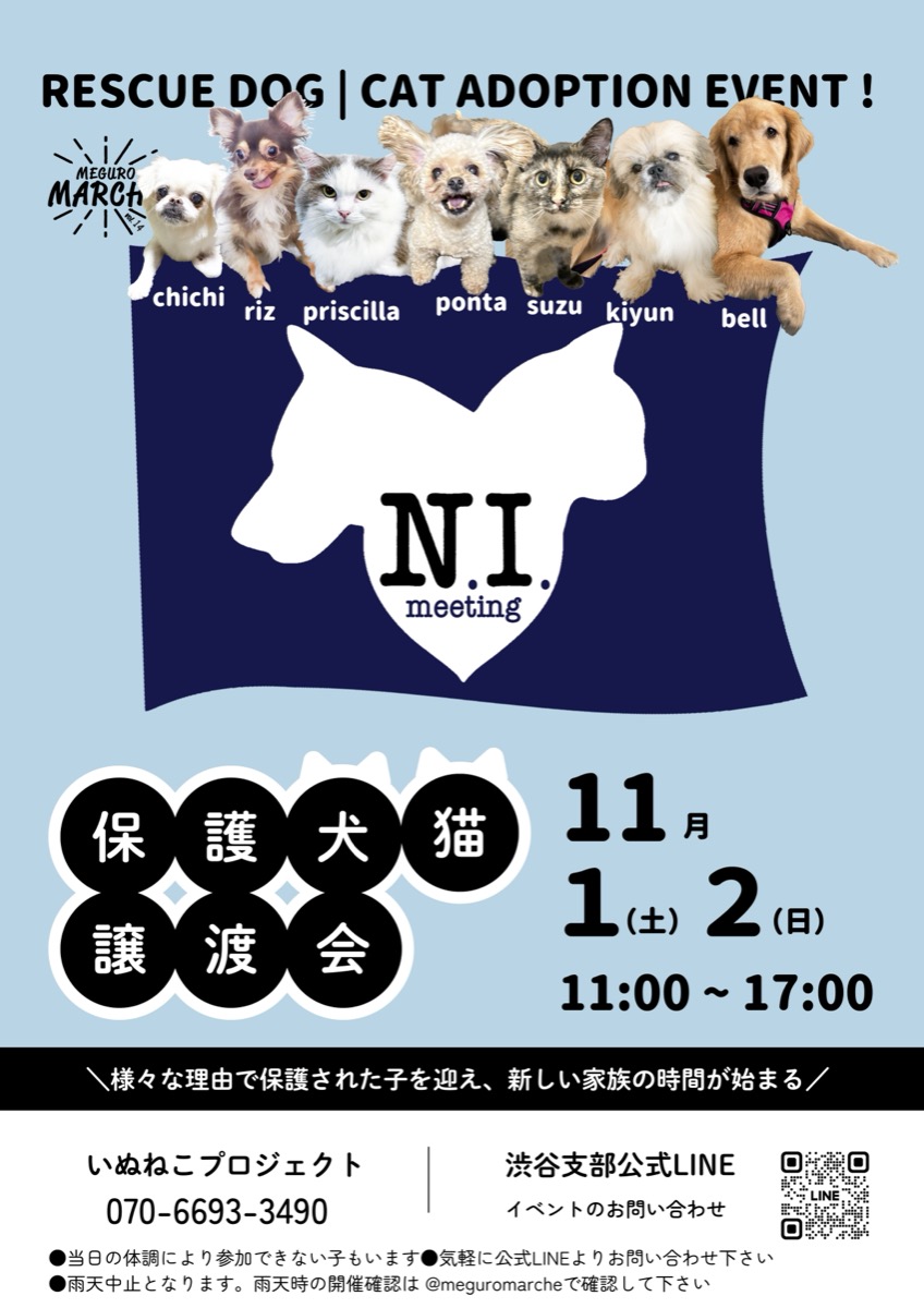 保護犬・保護猫譲渡会「N.I.meeting」開催のお知らせ