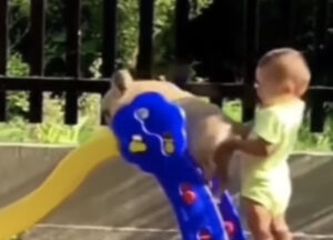 「はい、投げて♪」ボール遊びを赤ちゃんに教えたい大型犬。教育係として奮闘する姿が可愛すぎる