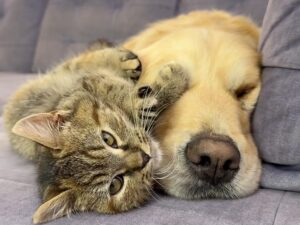 ゴールデンレトリバーと子猫の初めての出会い!嫉妬や好奇心で忙しい